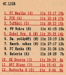 16.07.2019 12:20Na jaře 1994 jsme si znovu vybojovali postup do třetí nejvyšší soutěže, když jsme ve 4.C lize obsadili bronzovou příčku. K tradičnímu kvartetu opor Mirku Šoukalovi, Petrovi Šudovi, Jirkovi Hroníkovi a Dušanovi Malému se jako výpomoc z veteránů přiřadil Pavel Strnad, ale hlavně k suverénně nejlepšímu střelci skupiny Dušanovi se přidali Mário Doležal, který si po 6 gólech v premiérové sezoně vylepšil napodruhé svůj účet na 7 branek, a také nováček Martin Dudek, který se ve své první sezoně trefil 6x. Na druhou stranu jsme z prvního kvarteta inkasovali nejvíce branek, což souviselo s tím, že pozměněný tým už neměl tolik univerzálů schopných nejen útočit, ale i bránit. A tak se Mirek Šoukal mohl z čistého konta radovat jen ve třetím kole.